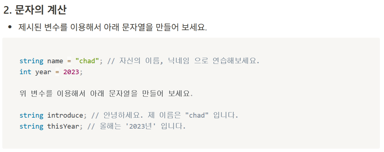 // **문자열을 쓸 때 " <-표시는 string 안에 쓸 수 없다.