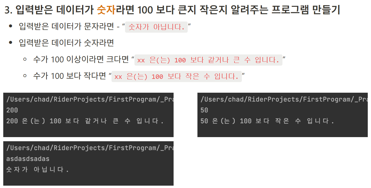 Console.WriteLine(num + " 은(는) 100 보다 크거나 같은 수 입니다.");