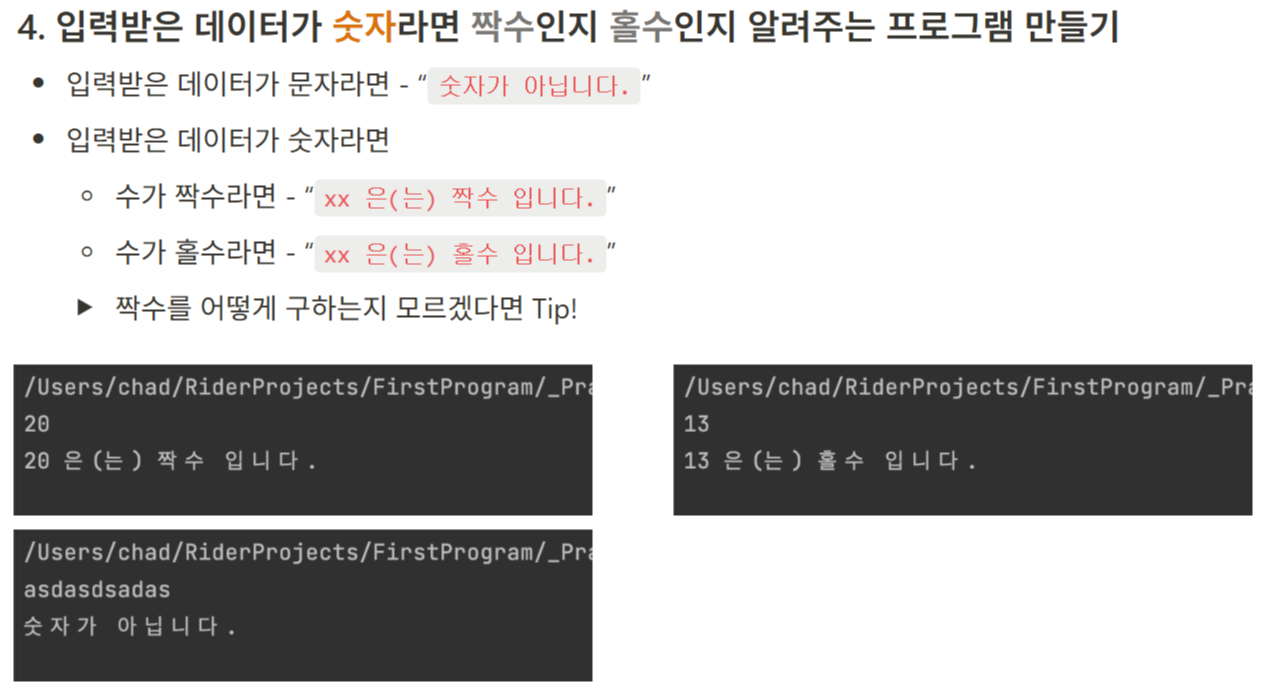 // 4.입력받은 데이터가 숫자라면 짝수인지 홀수인지 알려주는 프로그램 만들기