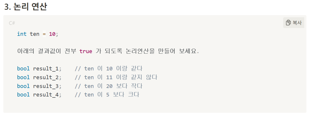 bool ret1 = ten == 10; // ten 이 10 이랑 같다