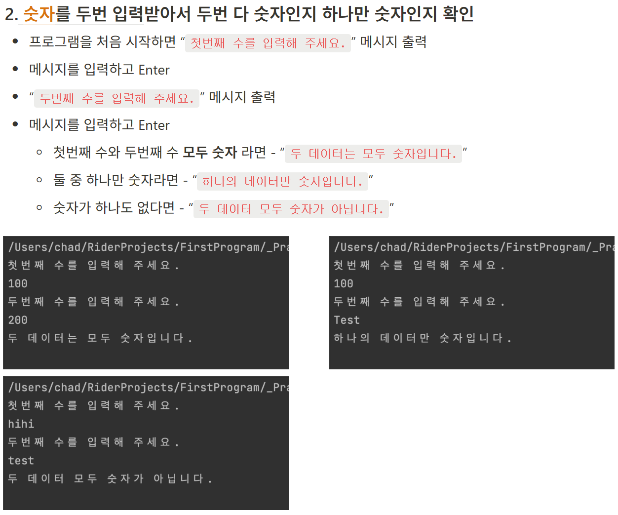 Console.WriteLine("두 데이터는 모두 숫자입니다.");
