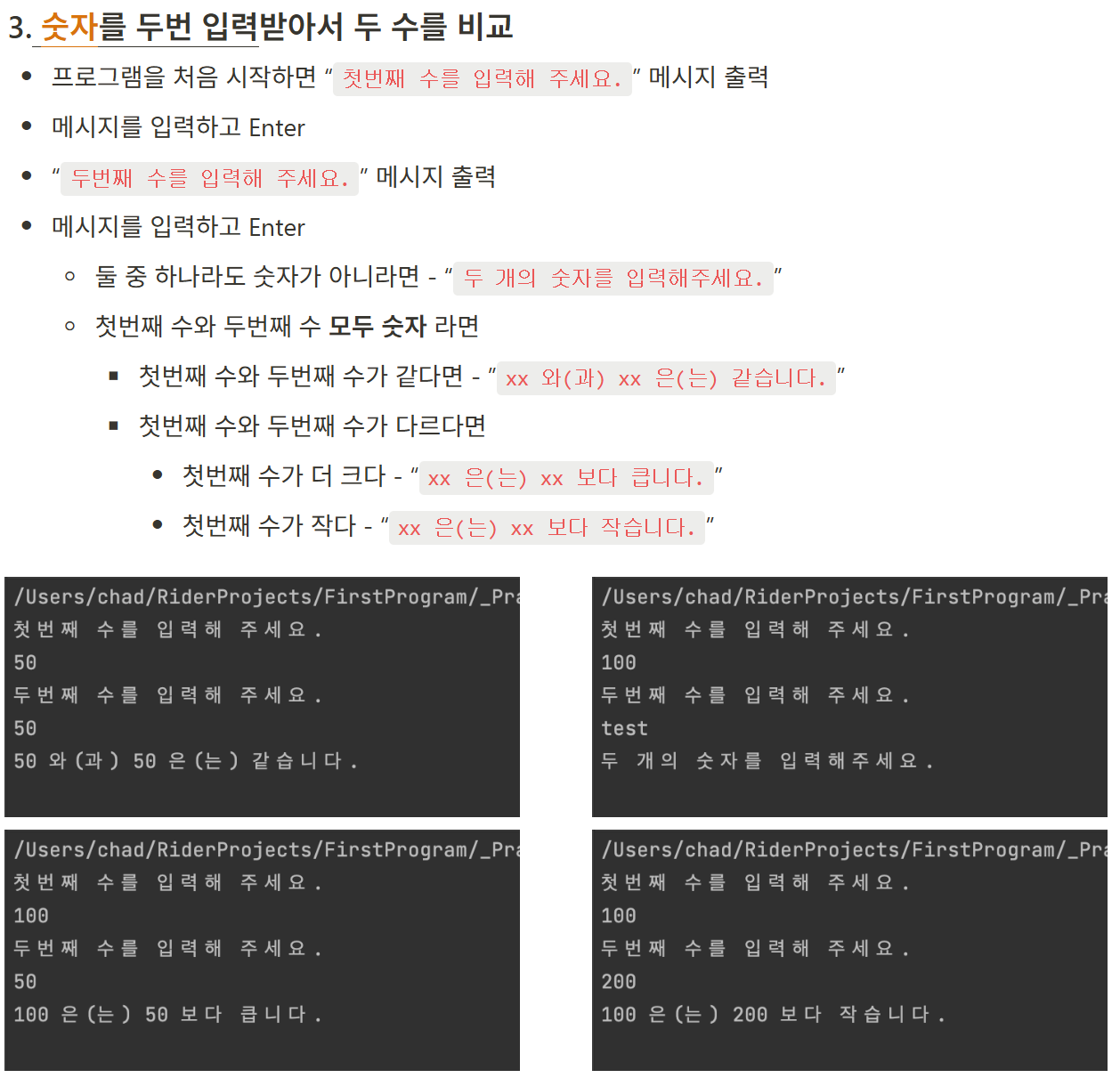 // 3. 숫자를 두번 입력받아서 두 수를 비교